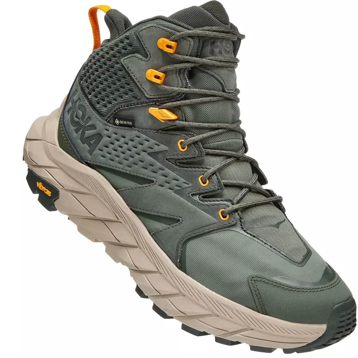 L’ANACAPA MID GORE-TEX di Hoka One One è una scarpa da trekking da uomo per brevi escursioni, che si distingue per la sua suola pronunciata.