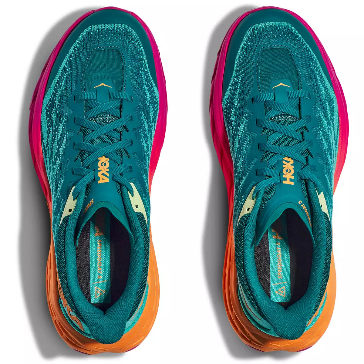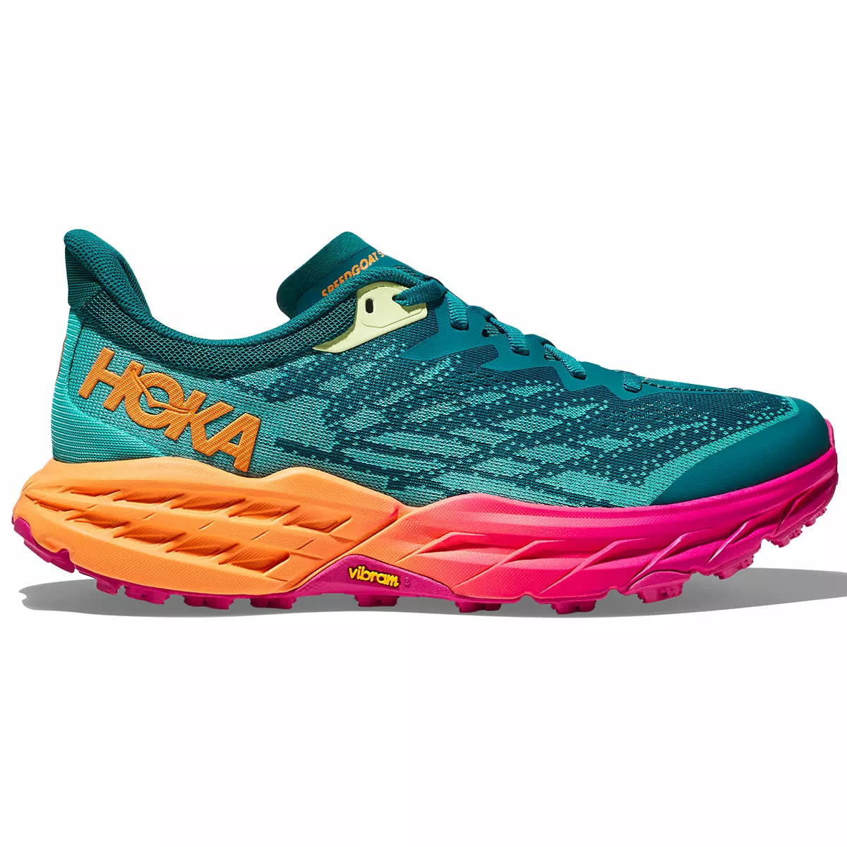La Hoka One One SPEEDGOAT 5 è una scarpa da trail da uomo di alta qualità, rinomata per la sua velocità su terreni tecnici.
