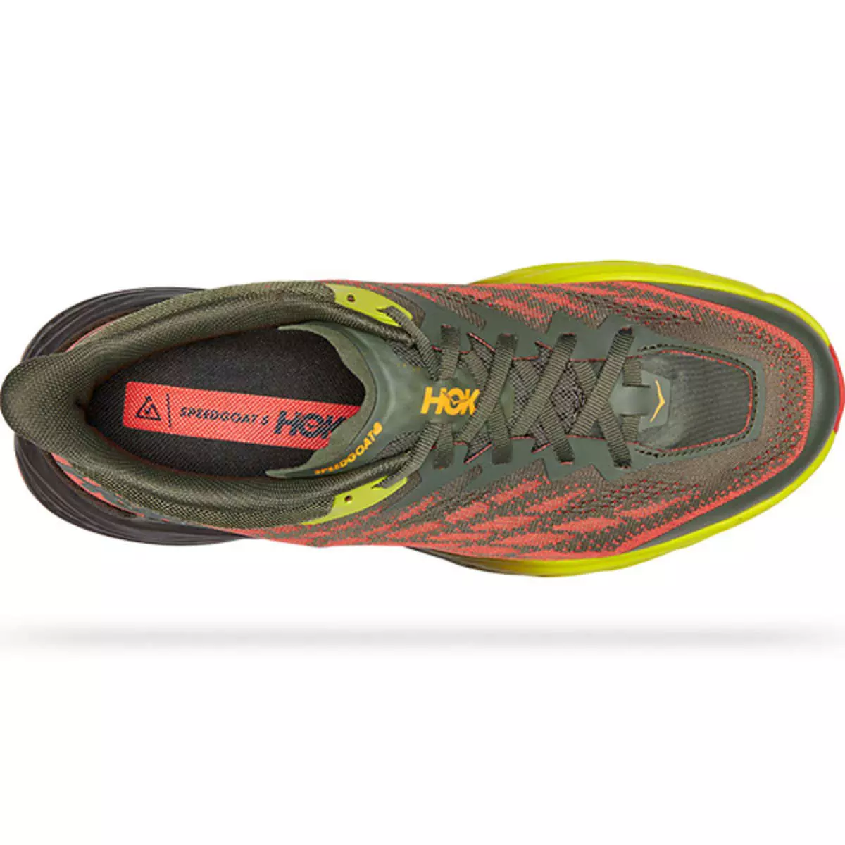 La Hoka One One SPEEDGOAT 5 è una scarpa da trail da uomo di alta qualità, rinomata per la sua velocità su terreni tecnici.